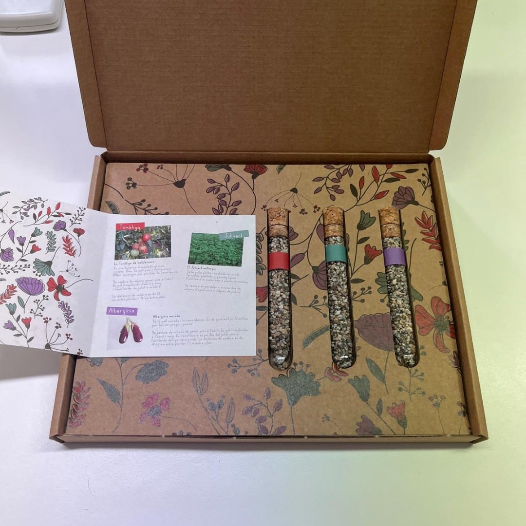 La capsa de llavors de varietats locals està composta de 3 tubets que inclouen llavors ecològiques de varietats locals.